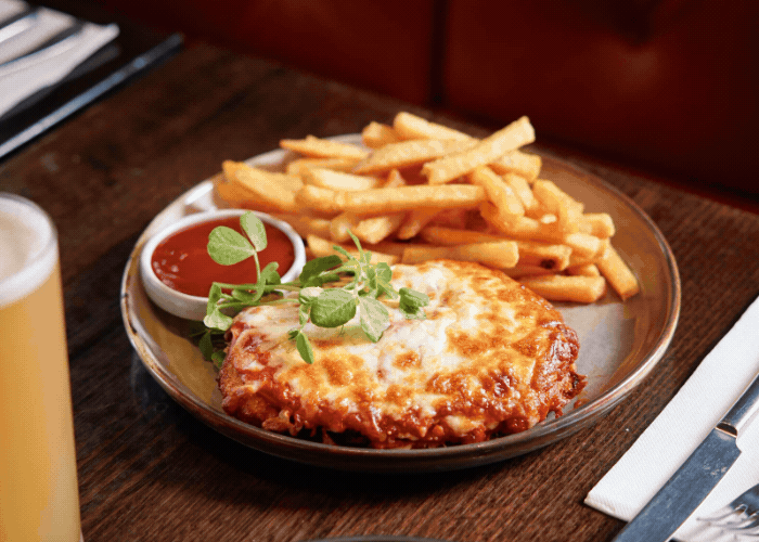 w lettuce, tomato, house-made pickles, cheese, smokey bbq sauce, American mustard, ketchup & chips